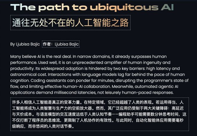 也有乐观者认为,这可能确实是未来的一种方向,因为这种Token的输出速度,并不是给人类准备的。