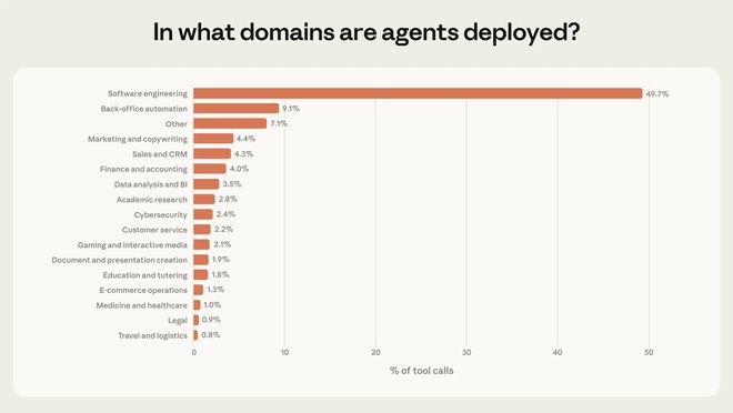 Anthropic:软件工程占AI智能体调用近五成,垂直领域渗透率极低