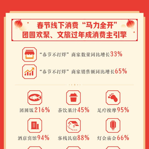 2026年春节,线下消费市场“马力全开”,大众消费意愿强烈。抖音生活服务数据显示,春节期间坚持营业的“春节不打烊”商家数量同比增长33%,相应商家销售额同比增长了65%。