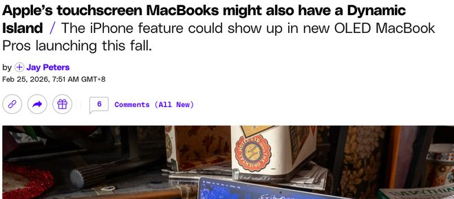 【环球网科技综合报道】2月25日消息,据The Verge和彭博社知名记者马克·古尔曼(Mark Gurman)最新爆料,苹果公司计划在今年秋季发布首款配备OLED触控屏的MacBook Pro,并首次将iPhone标志性的“灵动岛”(Dynamic Island)设计引入Mac产品线。