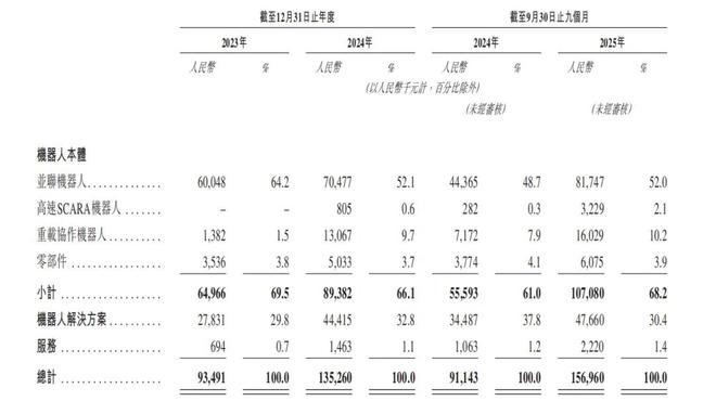 另一个关键数据是,截至2025年9月30日止9个月,其前五大客户覆盖电子雾化、锂电等多个行业,但其中四家主要采购并联机器人,一家采购解决方案。这也表明,其增长重心仍高度依赖于单一核心品类。