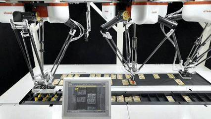 高速并联机器人,靠多条机械臂一起带动末端执行部件干活,酷似"蜘蛛手"。只是这一细分赛道的市场长期被瑞士ABB、史陶比尔等海外巨头垄断,一台设备就要几十万起步。