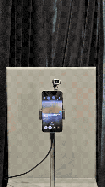 工作人员向小雷介绍,ROBOT Phone这颗摄像头可与荣耀「AI智能体大脑」结合,带来新的独特交互方式:在开启某个功能后,摄像头会根据外部场景实时生成相应对话,让手机真正拥有了「眼睛」。这颗摄像头甚至可以跟随外部音乐变化,进入节奏律动模式,「跳起舞来」的同时,也让观众感受到云台极高的灵敏度。