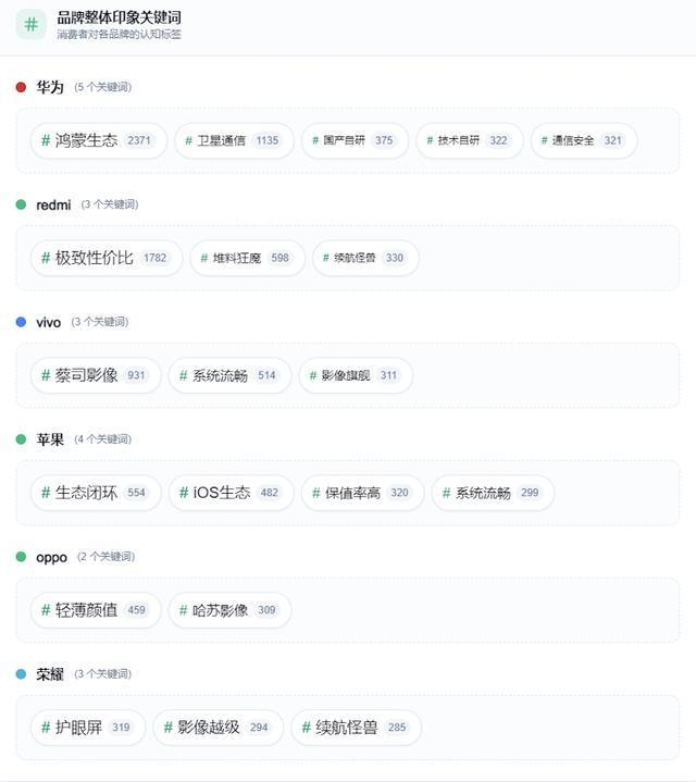 Ai平台描绘各手机品牌的“核心印象”关键词