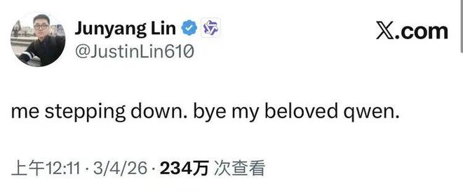 今天最有影响力的开源模型之一阿里千问Qwen系列的核心负责人林俊旸,3月4日凌晨在x上突然发帖宣布自己离开Qwen团队。