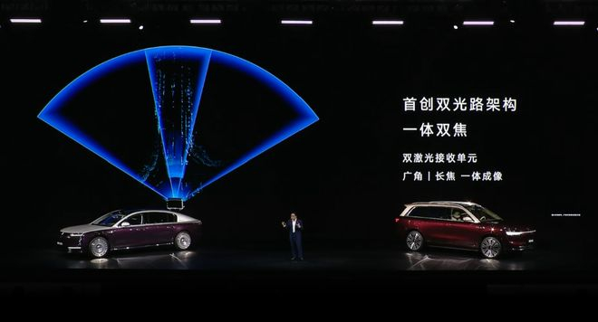 其首创的双光路架构,具有一体双焦的能力,也就是一个激光雷达上同时有两个不同焦段的激光来接收,既有一个广角,还有长焦来接收信息。
