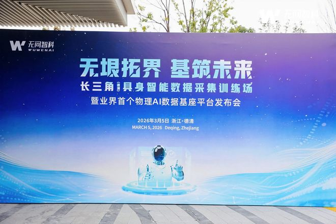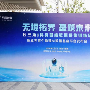2026年3月5日,由无问智科主办的长三角(德清)具身智能数据采集训练场暨业界首个物理AI数据基座平台 “无垠” 发布会在德清国际会议中心圆满落幕。本次大会以“无垠拓界・基筑未来”为主题,汇聚具身智能领域顶尖专家学者、头部产业伙伴、知名投资机构代表及省市区县各级政府领导,通过主题致辞、产品发布、技术分享、圆桌对话、实地参观等环节,共同探讨具身智能数据破局与场景落地的新路径。