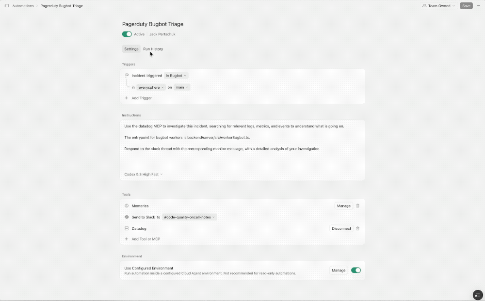 这些Agent可按开发者定时任务运行,或由发送Slack消息、新建Linear工单、合并GitHub PR、发生PagerDuty告警等各类事件触发。开发者也可通过Webhook配置自定义事件。