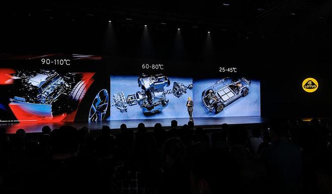 冯擎峰在发布现场,对莲花For Me的技术体系进行了全面解读,包括超混架构、热管理系统、驾控、空气动力学、轻量化等等。