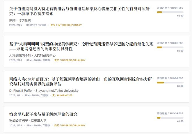 而等春节一到,闲到发慌的网友,彻底把底刊搞爆了。截至 2 月 25,根据 Web of Nothing( 并非正经数据库 ) 的报告,他们 “ 收录 ” 的底刊已经干到 160 多家。。。