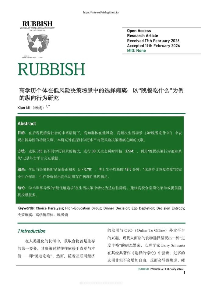 受到这类评论的启发,来自北京协和医学院的研究生 R 老师,在朋友的帮助下搞定了排版和网站,亲自操刀第一篇,首个学术底刊 《 Rubbish 》 闪亮登场。