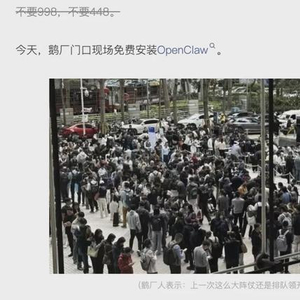 3月6日,腾讯在深圳总部公司门口摆摊免费安装OpenClaw,排队人群从2岁到60岁;春节假期后,北京深圳上海线下沙龙场场爆满,200人的场报名人数逼近两千,一票难求;大厂们跑步入场,网易有道推出LobsterAI(有道龙虾),百度、阿里、Kimi、MiniMax等纷纷推出自家“龙虾”产品。开发者更是疯狂,各种养龙虾攻略弥漫社群。