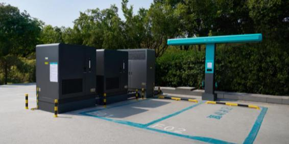配合闪充技术,比亚迪同步推出单枪功率达1500kW的全新闪充桩。为避免对电网造成过大压力,闪充站将配备超级快放储能系统,实现功率平抑。