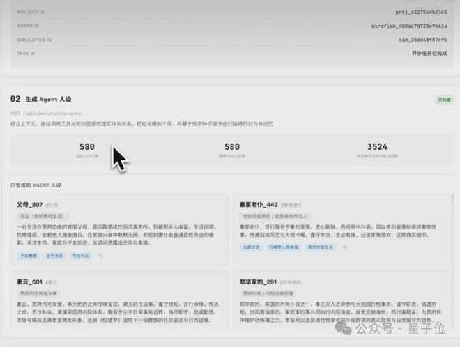 在这里总共提取出了580个人设,也就是预计生成580个Agent。