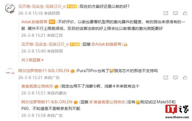IT之家注意到,有网友询问是现在的方案好还是以前的好,博主表示:“不好评价,以前也要看机型用的激光器件的精度,有的测出来很准有的一般硬件不行上限就很低,双目的话算法做的好上限会比以前普通的激光测距要好。”