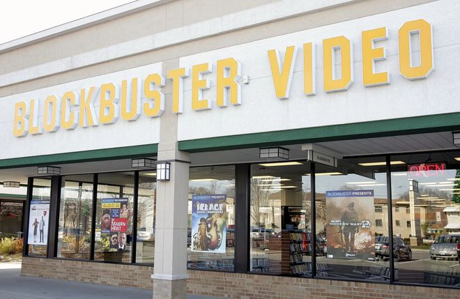 百视达(Blockbuster),巅峰时9000多家门店、市值数十亿美元,Netflix出现后2010年破产。