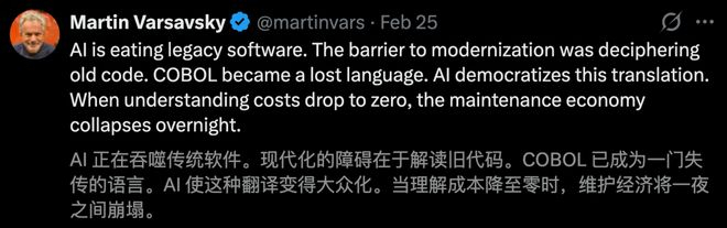 当然,IBM随即反击,称「翻译COBOL是简单的部分,真正的工作是数据架构重新设计、运行时替换、事务处理完整性」,但市场已经用脚投票了。