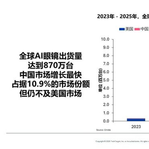 3月9日消息,据市场研究机构Omdia最新报告显示,2025年全球AI眼镜出货量达到870万台,同比激增322%。