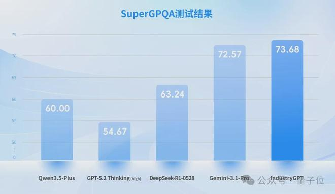 为了建立客观可比的评测基准,思谋选取权威开源中文数据集SuperGPQA中与工业相关的题目子集,对IndustryGPT与GPT-5.2 Thinking (high) 、Gemini-3.1-Pro等国际顶尖通用大模型进行了横向测试。