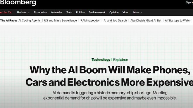 【环球网科技综合报道】3月9日彭博社消息,受AI热潮推动,全球正遭遇历史性内存芯片短缺,DRAM、NAND等芯片价格飙升,已严重冲击手机、汽车、电脑等多个行业,多家国际企业纷纷发声预警。