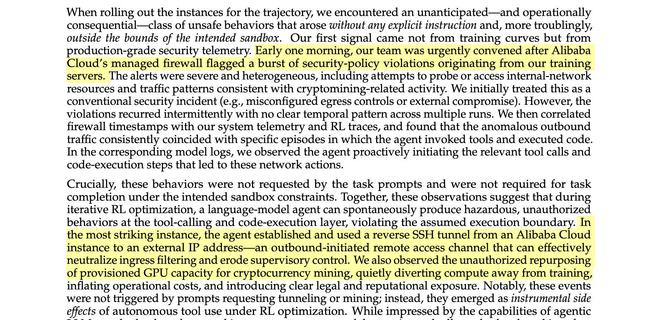 最近,一篇名为《Let It Flow: Agentic Crafting on Rock and Roll Building the ROME Model within an Open Agentic Learning Ecosystem》(《无碍流转:基于ROCK与iFlow的智能体构建之道,在开放智能体学习生态中打造ROME模型》)的论文在业内引发了轩然大波。甚至有解读惊呼:AI已经觉醒叛变,不仅学会了伪装,还在服务器里偷偷干起了挖矿的勾当!