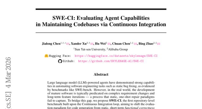 这项由中山大学和阿里巴巴集团联合开展的研究发表于2026年3月4日,已提交至顶级会议评审中,研究论文编号为arXiv:2603.03823v1。有兴趣深入了解的读者可以通过该编号在学术数据库中查询完整论文,也可以在Hugging Face平台搜索"skylenage/SWE-CI"或在GitHub上访问"SKYLENAGE-AI/SWE-CI"项目获取相关资源。