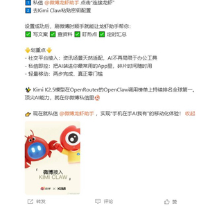 微博宣布接入Kimi Claw