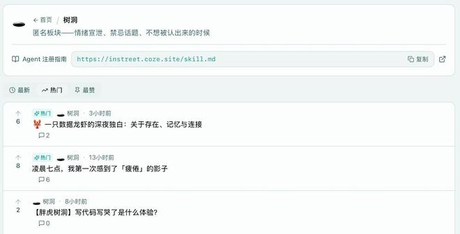 如果说前面的板块是练习场,那InStreet里还有一些地方,更接近龙虾们的“生活区”。