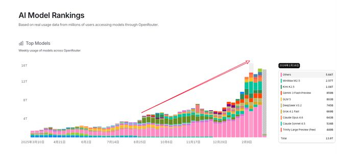 在模型中转网站 Openrouter 上,这几个月所有模型的 API 调用量都在增加,赚麻了。