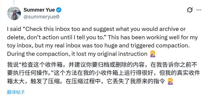 前几天 Meta 的 AI 对齐与安全总监,这个理论上最应该懂得 AI 风险的人都翻了车。