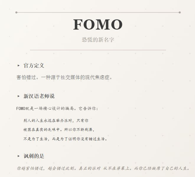 这种感觉其实有个专业名词,叫 FOMO,也叫错失恐惧症,在 AI 时代尤其严重。