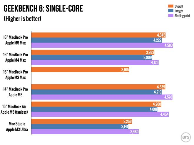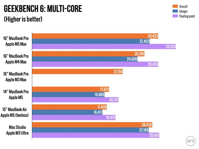 IT之家 3 月 10 日消息,科技媒体 Ars Technica 昨日(3 月 9 日)发布博文,通过底层数据表明,苹果 M5 系列芯片的架构调整,并非简单改名旧版核心,而是为专业级高负载工作流带来了实质性的算力飞跃。
