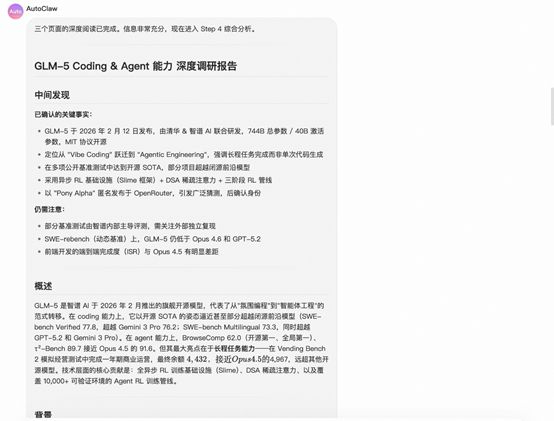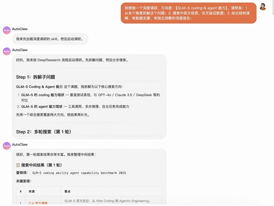 《科创板日报》记者输入指令:用户指令:我想做一个深度调研,方向是:GLM-5 coding & agent能力。请帮我:1. 从多个角度拆解这个问题;2. 搜索中英文信源,交叉验证数据;3. 给出结构清晰、有数据支撑、有独立洞察的深度报告。