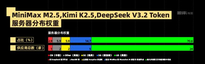 比如 MiniMax M2.5 的 Token 服务器,地址就基本以美国为主。而三个头部国产模型,只有 DeepSeek 一家有一个明确的国内服务器。