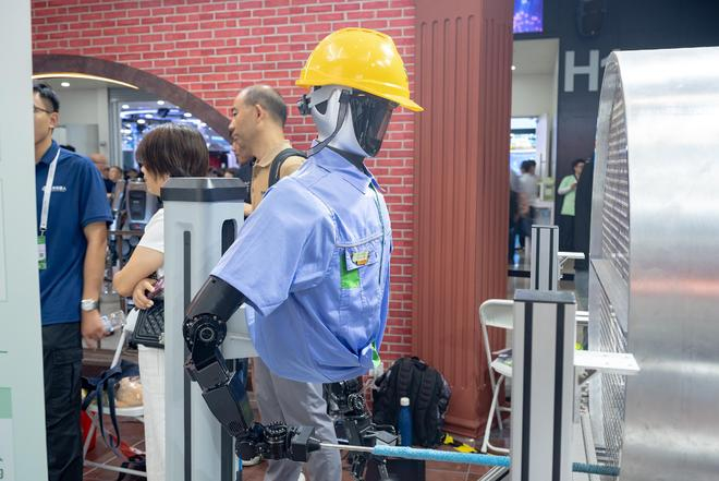 2025年7月27日,上海浦东新区,2025WAIC世界人工智能大会在上海举办。图为机器人演示车间内工作替代工人的应用场景。(图片来源:视觉中国)