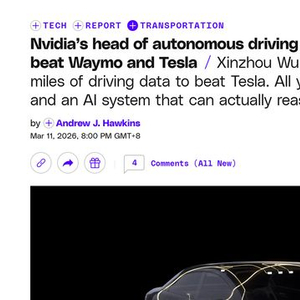 作为全球芯片领域的领军企业,英伟达早已在自动驾驶领域深耕布局,不仅为特斯拉等企业提供核心芯片产品,还向奔驰、捷豹路虎、Lucid等合作伙伴输出自研的人工智能驾驶功能。在今年早些时候的国际消费电子展上,英伟达正式发布Alpamayo自动驾驶解决方案,该方案整合了人工智能模型、仿真蓝图和数据集,能够支持车辆实现特定条件下完全自主行驶的L4级自动驾驶,黄仁勋将这一发布称作“实体AI的ChatGPT时刻”。