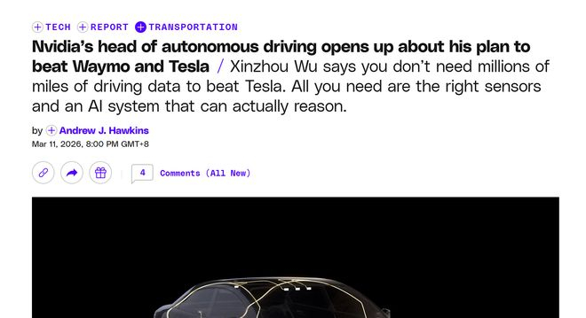 相较于纯端到端人工智能模型或传统技术栈的单一方案,英伟达打造了独有的技术融合路径,将端到端AI模型与传统人工工程化的“经典”技术栈相结合。黄仁勋表示,纯端到端模型的安全验证难度较大,而传统技术栈遵循成熟的工程规范,更易验证驾驶行为的安全性,二者结合让英伟达的自动驾驶系统既具备接近人类的自然驾驶风格,又能依托道路规则建立稳固的安全框架。吴新宙也提到,端到端模型在处理减速带、变道等场景时,操作更为自然流畅,能提升用户使用体验,这也是该技术被视作行业重要突破的原因。