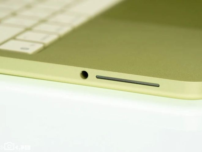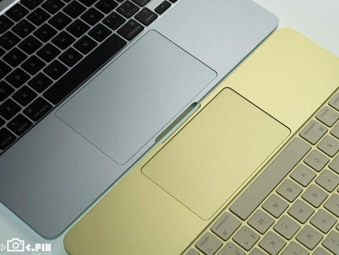 甚至还有个挺有意思的小设计 —— MacBook Neo 的键帽颜色是跟机身配色呼应的,比如蓝色机身对应的就是浅蓝色键盘,绿色机身就是浅绿色键盘,这让它在视觉上看着还挺高级。