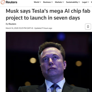 根据此前的路线图,特斯拉预计于2026年内获得AI5芯片的样品并进行小批量试产,大规模量产则计划于2027年全面展开。Terafab工厂的启动将被视为这一路线图的关键加速器,旨在为2027年的大规模量产提供坚实的产能备份和技术验证基地。(青云)