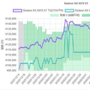 作为RX 9070 XT需求最旺盛的地区之一,日本市场该显卡1月底一度飙升至14万日元,较2025年11月上涨30-35%。