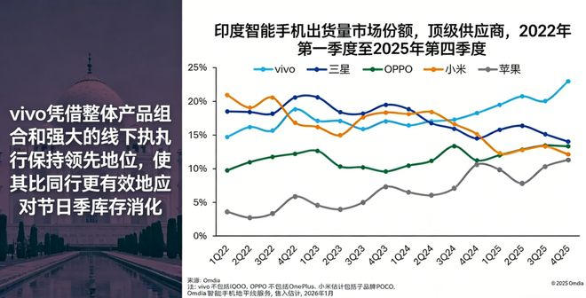 国内虽然靠 “人车家生态 ” 、独一份的背屏以及跟徕卡的深度联名卖得不错,但在印度、欧洲这些老根据地,被竞争对手和地缘政治折腾得够呛,全年出货微跌 2%。
