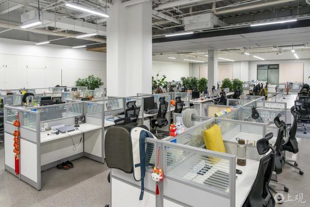 上海哈啰普惠科技有限公司一楼客服中心工位。