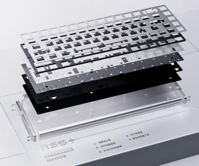 这批键盘配备 480MHz MCU 主控,内部采用 1.2mm 厚度 PCB 和包含复合材料轴下垫的五层声学填充。