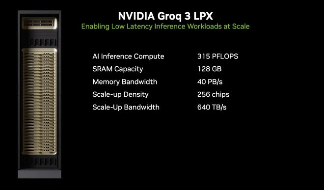 英伟达发布Groq 3 LPX机架系统:256颗芯片SRAM合计128GB