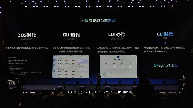 他把人机交互的历史分成了四个时代:1981到1995年的DOS时代,人用机器语言操作系统;1995年Windows 95开启的GUI时代,机器生成图形界面供人操作;2023年ChatGPT引爆的LUI时代,人用自然语言向AI下达指令。而现在,2026年,我们正在进入第四个时代——CLI时代。