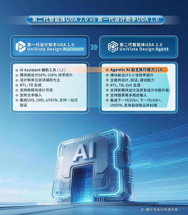 令人振奋的是,国内EDA行业在智能体AI领域也实现重大突破。今天,合见工软发布国内首款智能体AI自研EDA平台——智能体UniVista Design Agent (UDA) 2.0。凭借多项核心能力和行业领先优势,在下一代EDA前沿技术的全球竞争格局中,为国产EDA抢占了战略制高点。