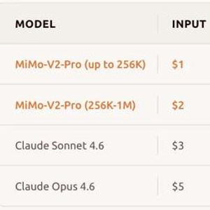 MiMo-V2-Pro 和Claude的API服务收费标准