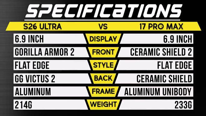 苹果iPhone 17 Pro Max和三星Galaxy S26 Ultra手机耐摔对比