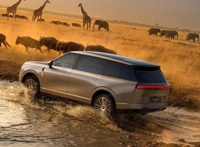 小鹏 GX 增程版与纯电版采用统一的设计语言,延续新势力品牌标志性的极简风格,整体造型硬朗大气。车身比例方面,新车采用长轴距、长后悬布局,并配合悬浮式车顶设计。外观细节上,车头与尾部均配备三段式贯穿式灯组,前脸采用分体式大灯布局,前包围集成主动进气格栅。