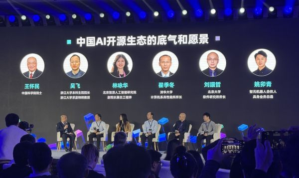 也是在这场大会上,我们还听到了浙江大学本科生院院长&浙江大学求是特聘教授吴飞、清华大学计算机系高性能所所长翟季冬、北京大学软件研究所所长刘譞哲、智元机器人合伙人兼具身业务总裁姚卯青几位关于中国AI开源生态优势的分析。